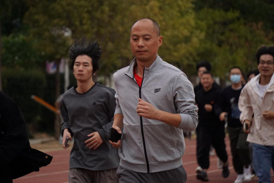 在全体师生的注目礼下,国旗护卫队踏着整齐划一的步伐走向升旗台,伴随着国歌雄壮、悠扬的旋律,五星红旗冉冉升起,在晨曦中迎风飘扬。专职辅导员倪海奔老师在国旗下发言,他表示作为园林系学子,要铭记新生入学的誓词,不辞艰辛,执着追求,做一名对祖国有用的人。仪式完成,园林系党总支书记陈剑勇老师带领同学们晨跑,寓在强健体魄,争做向前追梦人。