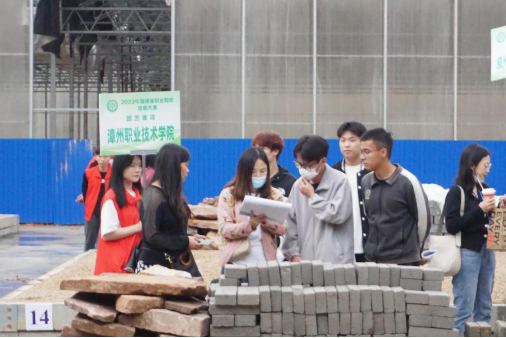 图1 志愿者引导参赛队伍参观园艺施工赛场