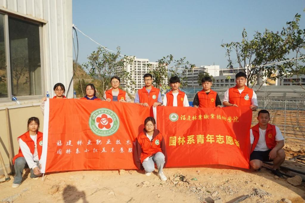 下午3时,小红花志愿服务队来到林职院江南校区后山大棚。志愿者们铲土填坑、挥锹培土、夯实土层、浇水灌根,来回穿梭,分工合作。看着自己的劳动成果—颗颗树挺拔而立时,露出了心满意足笑容。