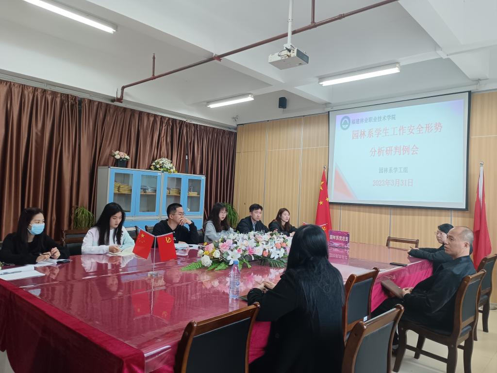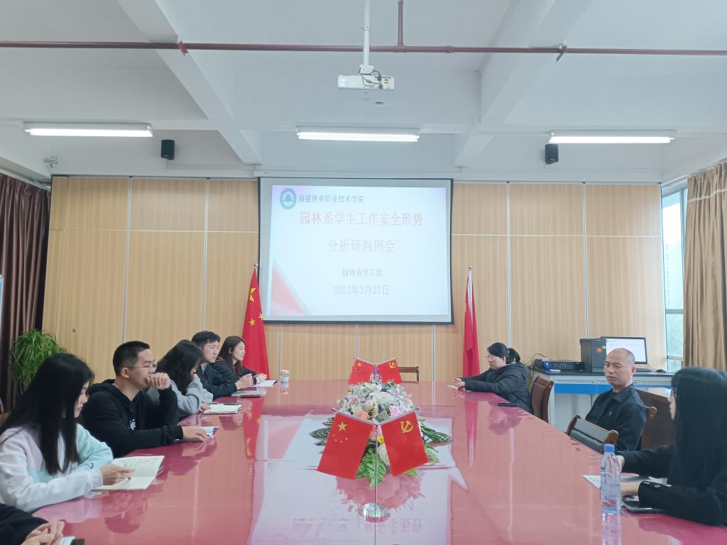 为科学分析研判学生心理危机形势,提高心理危机防控工作的针对性和实效性,3月31日上午,园林系第2次学生工作安全形势分析研判会在系会议室召开,系党总支书记陈剑勇、学生科科长兼团总支书记吴锦鸿、心理中心黄韵绣老师以及全体辅导员参加会议。
