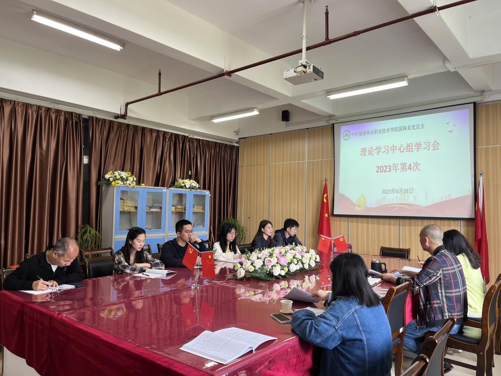 2023年4月28日上午,园林系党总支召开2023年第4次理论学习中心组学习会,此次学习会由园林系党总支理论学习中心组成员参加,学生党支部书记和专职辅导员列席,系党总支书记陈剑勇领学。