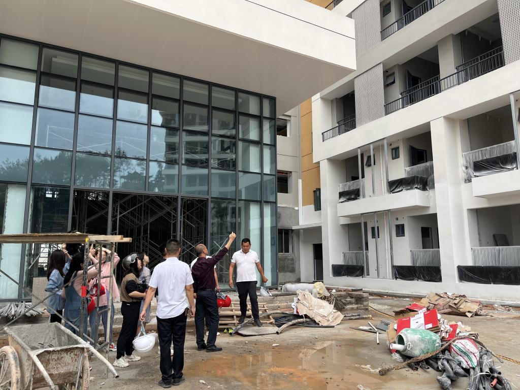 2023年5月6日,园林系党总支书记陈剑勇带领系党总支副书记黄淑燕、学生科科长兼团总支书记吴锦鸿、专职组织员吴慧敏及全体专职辅导员实地考察学生公寓九工程建设,深入思考部署“一站式”社区综合管理模式建设方案。