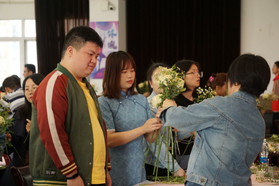 随后进入插花实操环节,黄淑燕副书记耐心讲解花束设计及包装技巧,辅导员们至此开始了“沉浸式”插花,用巧手和智慧,享受插花艺术魅力和花艺创作过程所带来的幸福。