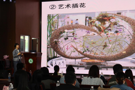 活动伊始,园林系党总支副书记、插花与花艺设计科任教师黄淑燕从插花艺术的含义、插花艺术的范畴、插花艺术的特点和作用、插花艺术的类型、花语小常识、送花礼仪等六个方面为辅导员们普及插花与花艺花艺常识。