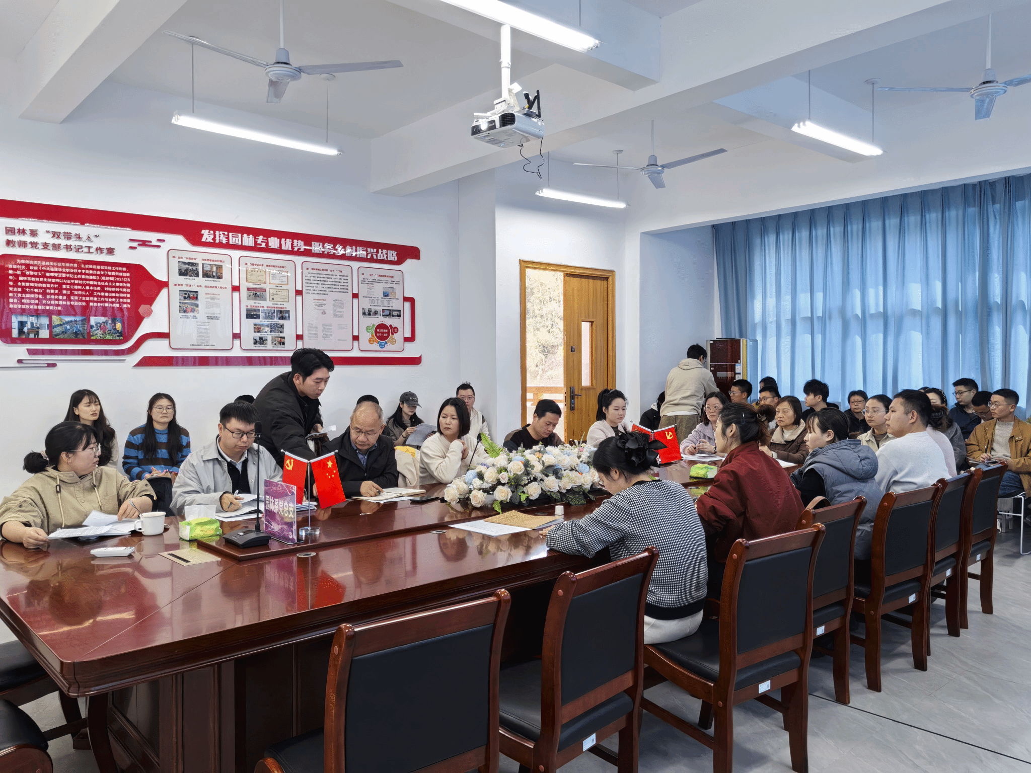黄华明主任全面总结上一阶段系部工作成效,客观分析了当前发展面临的机遇与挑战,对新学期系部整体工作提出明确总体要求。他提出三点要求:其一,全体教师要进一步提高思想站位,坚守教育初心、践行育人使命,始终把立德树人根本任务贯穿教育教学全过程、各环节,将思政元素与专业教学深度融合,着力培养德技并修、知行合一的园林专业人才;其二,要严守课堂主阵地,以严谨教风涵养优良学风,聚焦课堂效率与育人质量,凝心聚力推进专业内涵建设、实训教学提升、校企合作深化与人才培养模式创新等各项工作落地见效;其三,全体专兼职教师要加强自身专业素养提升,主动适应职业教育改革发展新形势,积极参与教研科研与技能提升,互帮互助、团结协作,以实干担当推动系部教育教学、专业建设、人才培养等各项工作高质量发展,为学院争创一流高职院校贡献园林系力量。