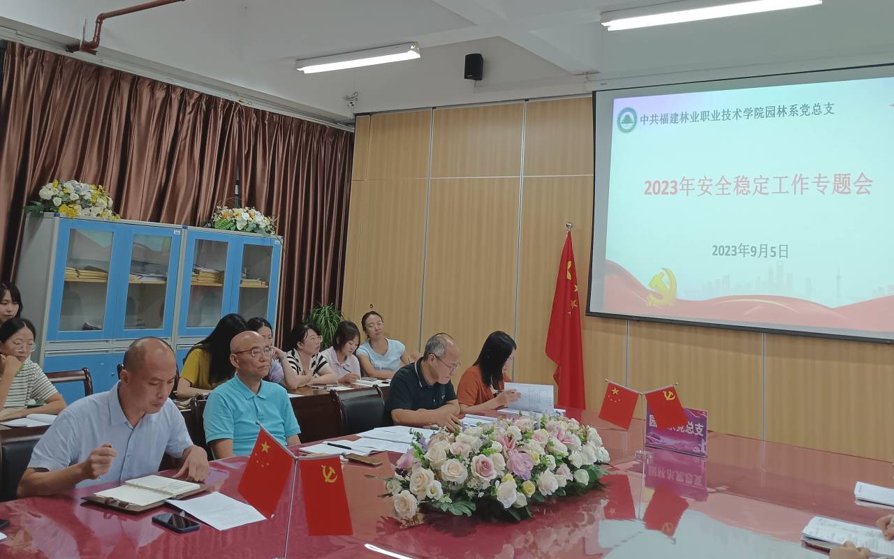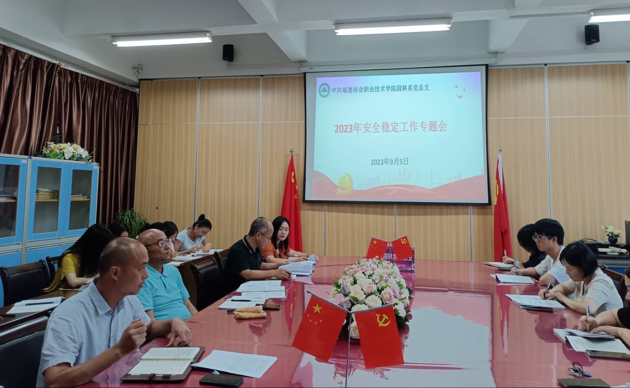 2023年9月5日下午,园林系党总支召开安全稳定工作专题会,全体专兼职教师参与,会议由园林系党总支书记陈剑勇主持。