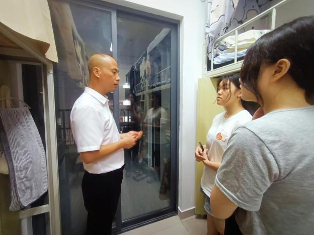 走访过程中,系党总支书记陈剑勇耐心询问新生需求,热情回应关切。黄华明主任希望新生们能够尽快调整好自己,以最好的状态投入到大学的学习生活中去。黄淑燕老师也热情的为新生介绍了教学楼、食堂、体育馆等设施。吴锦鸿老师为新生们介绍了延平的生活习惯及气候,帮助新生快速适应新环境。辅导员老师们认真聆听同学们的情况,记录他们反映的困难与问题,并耐心解答。
