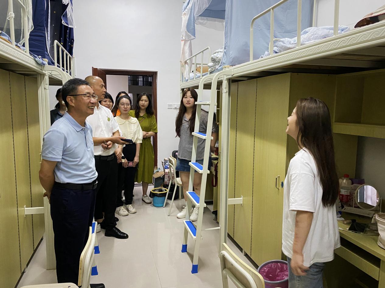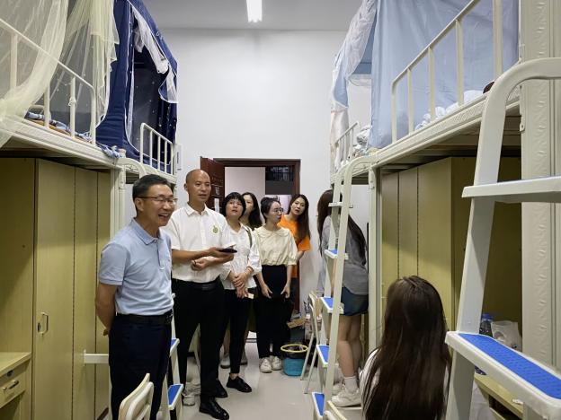 为深入了解新生的入校情况,掌握学生思想动态,解决学生实际问题,帮助学生尽快融入大学的学习和生活,9月8日晚7点,院党委委员李肇锋副院长,园林系领导班子成员及新生辅导员和助导们共同走访2023级新生宿舍,为他们带来学校的亲切关怀和殷切期望。
