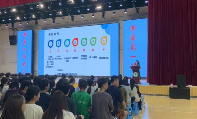 为落实立德树人根本任务,引导广大学生坚定理想信念,尽早完成角色转变,尽快适应大学生活,2023年9月14日晚上19点,园林系于江南校区体育馆举行2023级新生入学教育。本场新生入学教育内容为:学院章程、学籍与学业管理、校纪校规、大学生行为准则的介绍以及学生资助体系政策解读,分别由刘延君老师、曹婧老师负责讲解,园林系2023级全体新生参加。