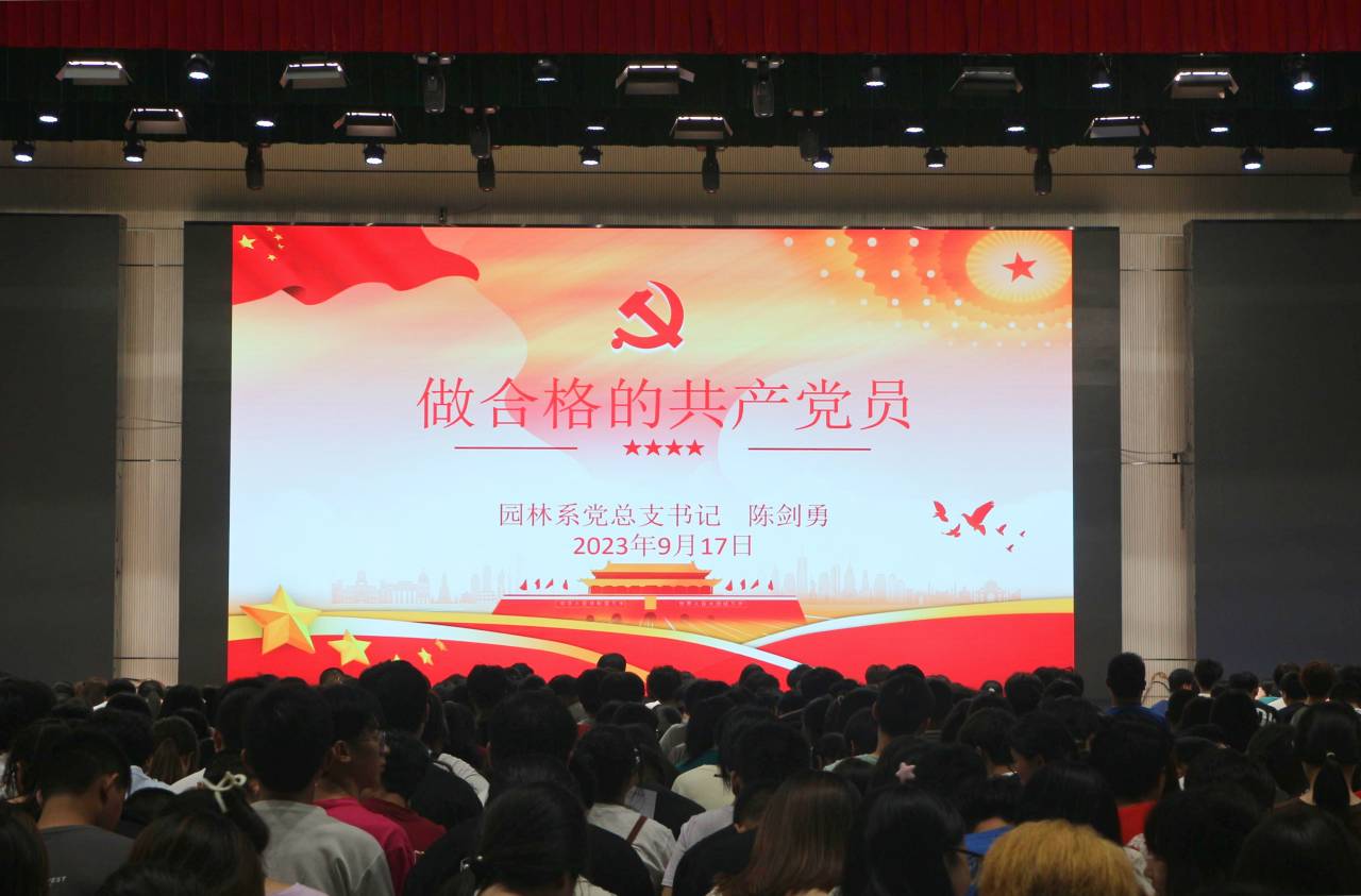 为引导2023级新生明确奋斗目标,坚定理想信念,增强家国情怀,激发使命担当,2023年9月17日晚19点,园林系于江南校区体育馆举办关于“爱国主义教育、做合格的共产党员”等专题的新生入学教育。由系学生科科长兼团总支书记吴锦鸿老师主持,系党总支书记陈剑勇老师和马克思主义学院教务科科长李佳老师主讲,园林系全体2023级新生参加。