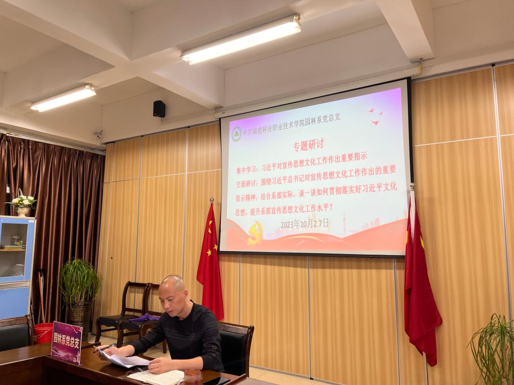 2023年10月27日上午,园林系党总支召开2023年第10次理论学习中心组学习会,此次学习会由园林系党总支理论学习中心组成员参加,学生党支部书记列席,系党总支书记陈剑勇领学。