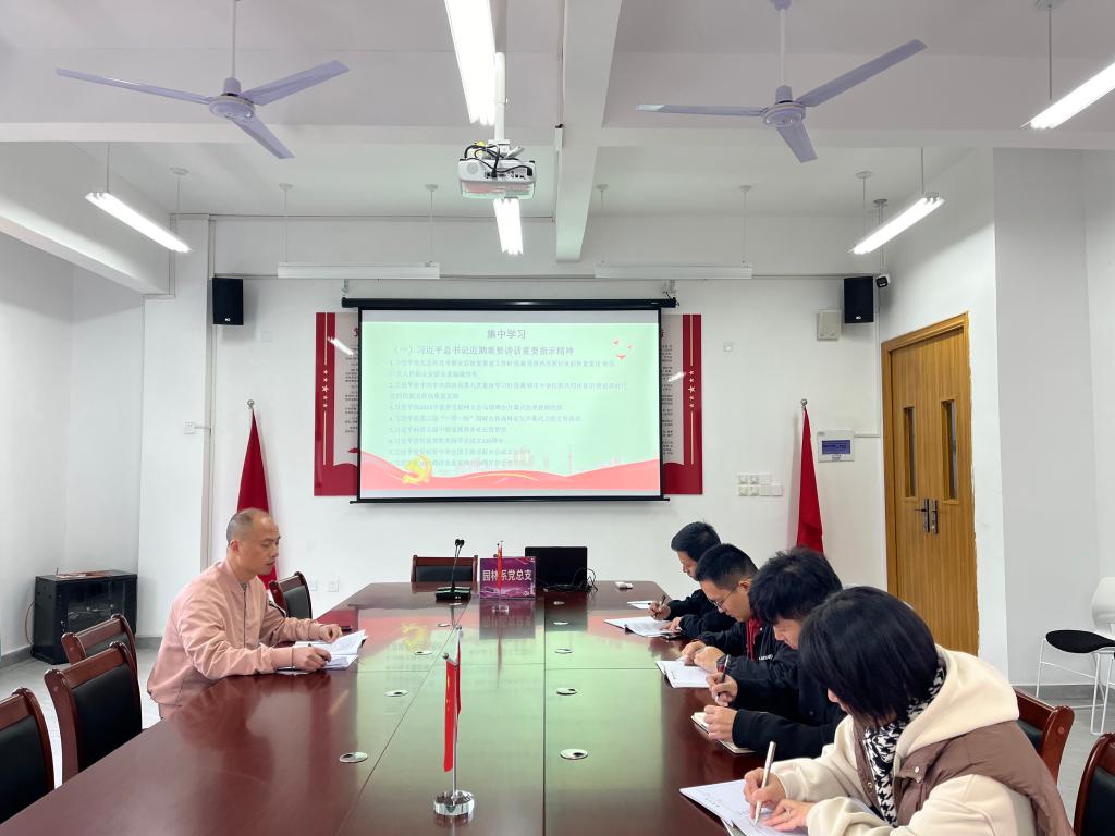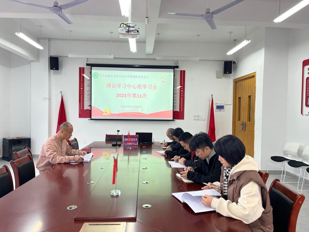 2023年11月29日上午,园林系党总支召开2023年第11次理论学习中心组学习会,此次学习会由园林系党总支理论学习中心组成员参加,学生党支部书记列席,系党总支书记陈剑勇领学。