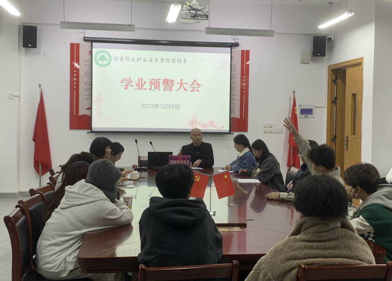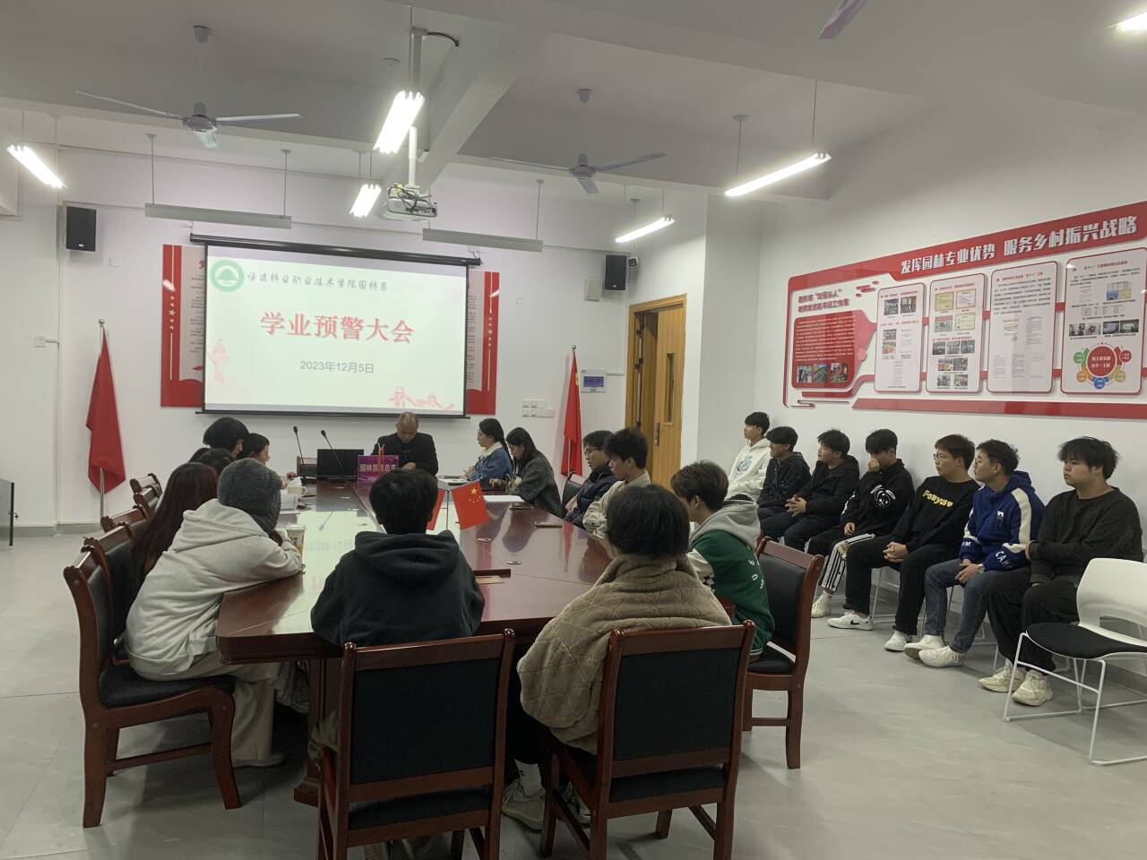 为进一步加强学风建设,提高学生学习的主动性和自觉性,督促学生顺利完成学业,2023年12月5日20:00,园林系组织召开学业预警大会。园林系党总支书记陈剑勇、党总支副书记黄淑燕、学生科科长兼团总支书记吴锦鸿、相关辅导员及本学期校纪学风建设方面受到处分的同学参与此次会议。