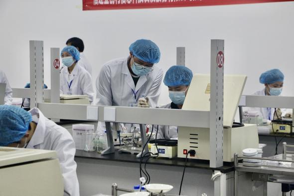各队按抽签工位号开始比赛,本次竞赛项目为团体赛,两人一组。不仅考察参赛选手对动物免疫及疫病防控等知识素养以及动物剖检、采样、检测和结果判定、分析应用等技能素养,还考察团队协作、分析解决问题等能力。