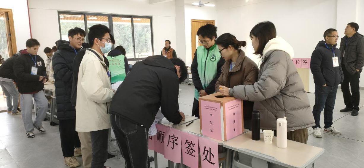 12月23日,参赛选手有序进入比赛现场进行检录,检查选手证件以及上交电子产品。随后参赛选手依次抽取顺序签、工位签,并领取竞赛相关的衣服以及手套。