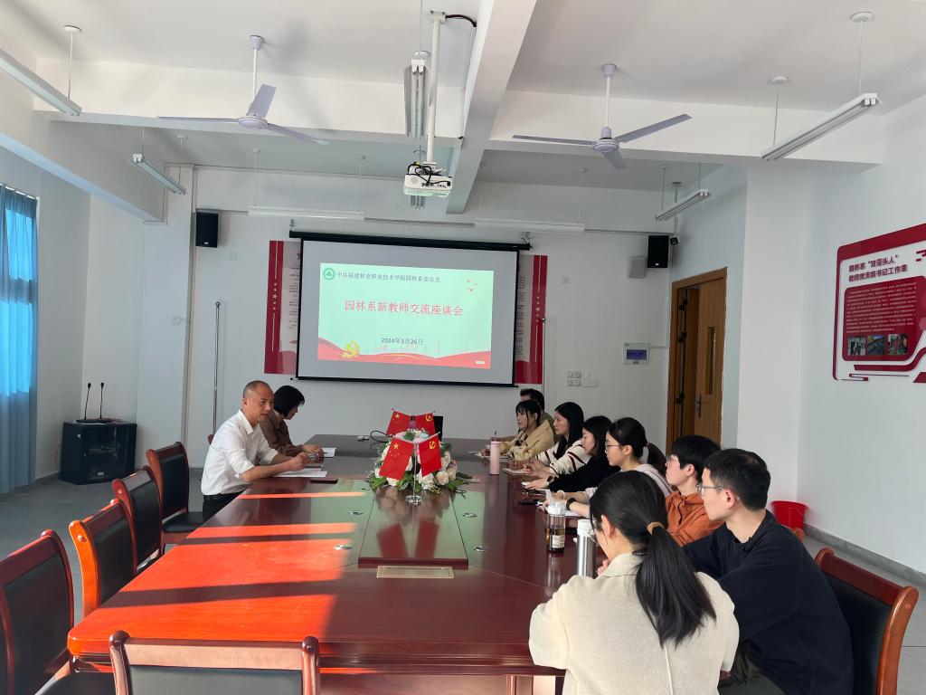 为进一步加强教师队伍建设,促进新入职教师尽快适应教育教学工作,2024年3月26日,园林系党总支书记陈剑勇与新教师开展交流座谈会,党总支副书记黄淑燕、专职组织员吴慧敏及新晋教师参会。