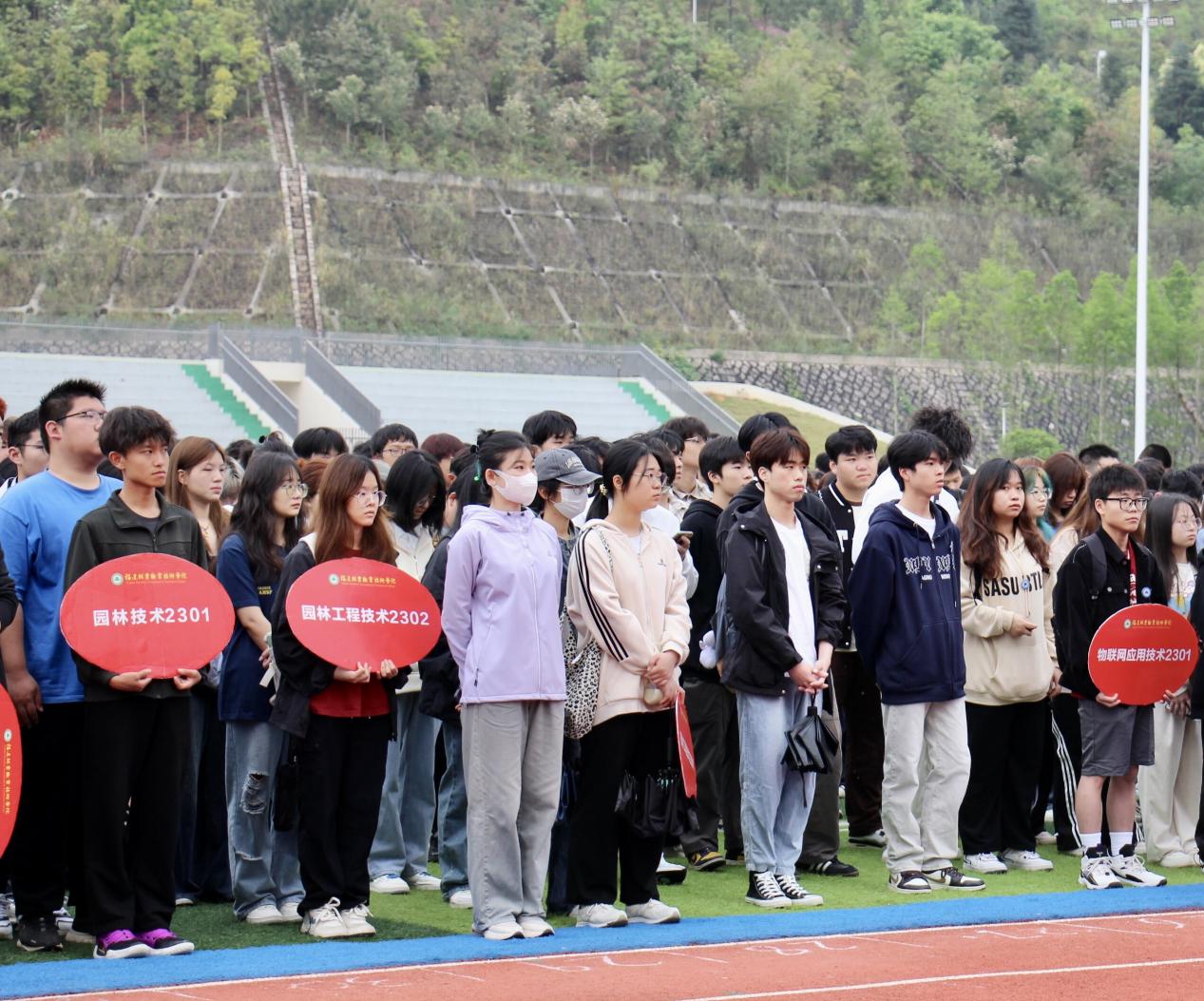 为着力增强青年学生的身体素质、引领青春运动风尚,养成健康生活习惯,2024年4月1日7:00,园林系于操场举行“升旗仪式暨阳光晨跑”。升旗仪式由陈颖老师主持,林晓芳老师进行发言,晨跑活动由园林系党总支书记陈剑勇带队,系学生科科长兼团总支书记吴锦鸿、全体专职辅导员、园林系全体在校学生参加。