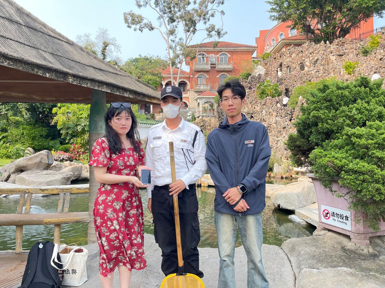 2024年3月27日上午八时三十分,游客带老人和孩子从沈阳到鼓浪屿旅游,在菽庄花园游玩时,老人不慎摔倒。作为园区管理员的园林系风景园林设计(五)1901班吴晓聪同学,在帮游客推轮椅到医院及做检查后,因病情需要需转到岛内就诊,更是主动陪游客至酒店取行李并送其到轮渡上。后游客特来电致谢并写感谢信赞扬吴晓聪等现场工作人员尽职尽责的工作态度。