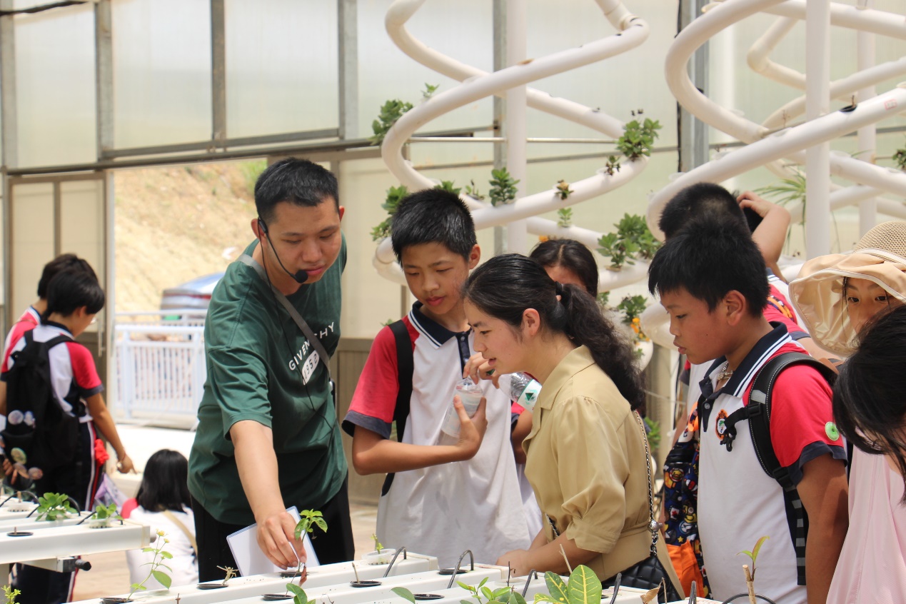 随后,金友帆老师带领着小朋友们到无土栽培实训基地,耐心的为小朋友们介绍各种植物的生活习性及无土栽培的技术,让小朋友们对无土栽培植物有了更进一步的了解。