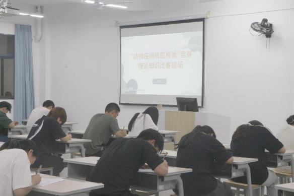大赛点亮人生,技能成就梦想。园林系于2024年5月28日星期二晚七点在园林楼教室举行“动物疫病检验检疫”竞赛决赛,本次比赛由吴锦鸿老师、黄智杰老师以及省赛该赛项一等奖获奖选手陈朝辉担任评委。