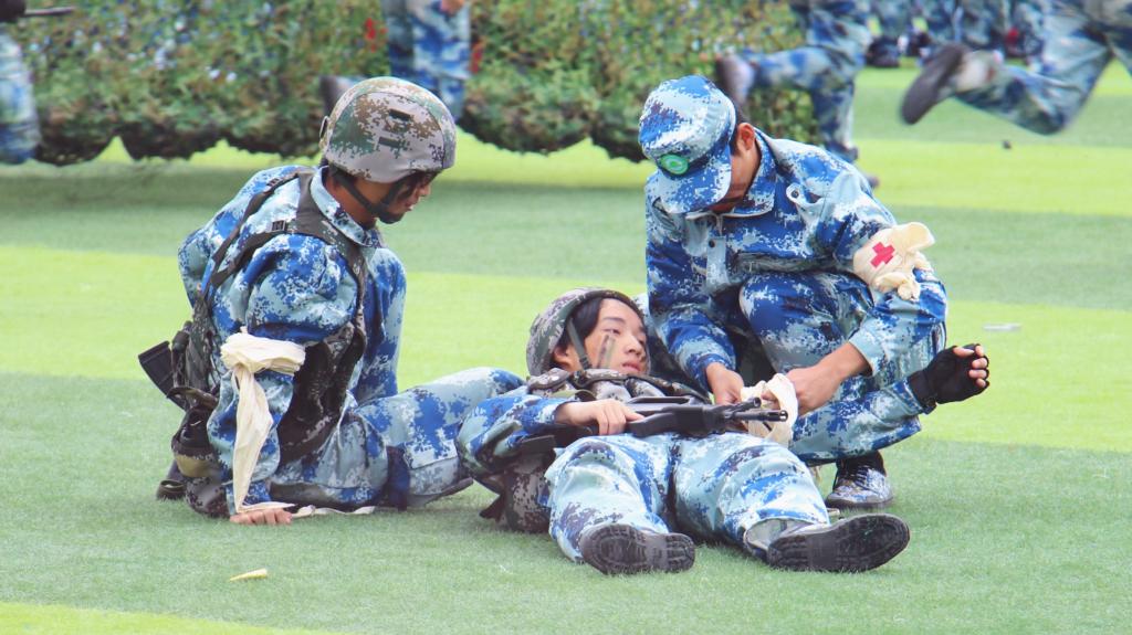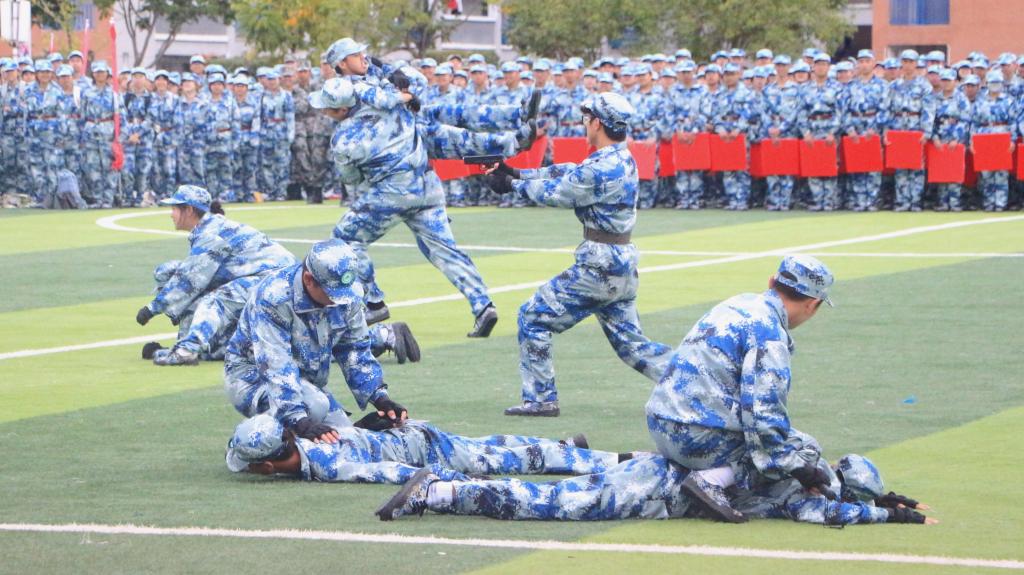 闭幕式上,各系演练方阵精彩纷呈,令人目不暇接。园林系五营表演匕首操的同学们英姿飒爽,手持匕首时动作刚劲有力且整齐划一,每一个刺杀动作都干净利落,眼神中透露出坚定与自信,淋漓尽致地展现出了园林学子的果敢与坚毅风采。军体拳方阵的同学们出拳刚猛有力,一招一式尽显力量与气势,将武术的神韵与军人的刚强完美融合。战术演练方阵通过精心设计的模拟场景,展现出同学们之间的默契配合与机智应对,凸显了团队协作的强大力量。