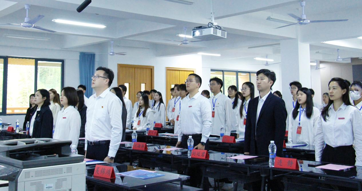 大会在庄严的国歌声中正式拉开序幕,全体参会成员起立奏唱国歌。