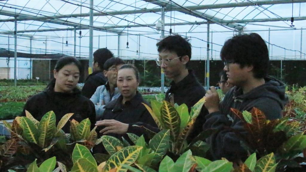 接着,戴曲顺老师带领着参观者们来到花卉产业生产基地,详细介绍了基地内的各种植物,以及对花卉产业生产基地的现代化设备进行了介绍,并与参观者们进行深入的沟通交流和答疑解惑。