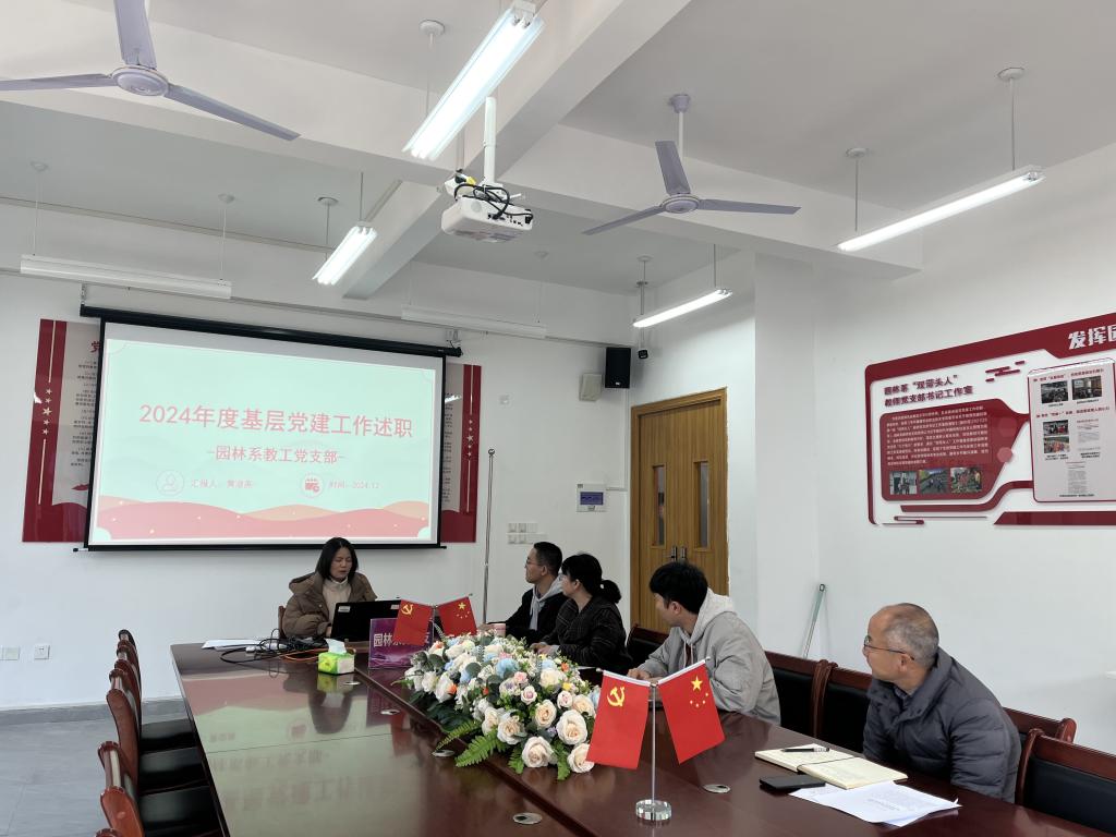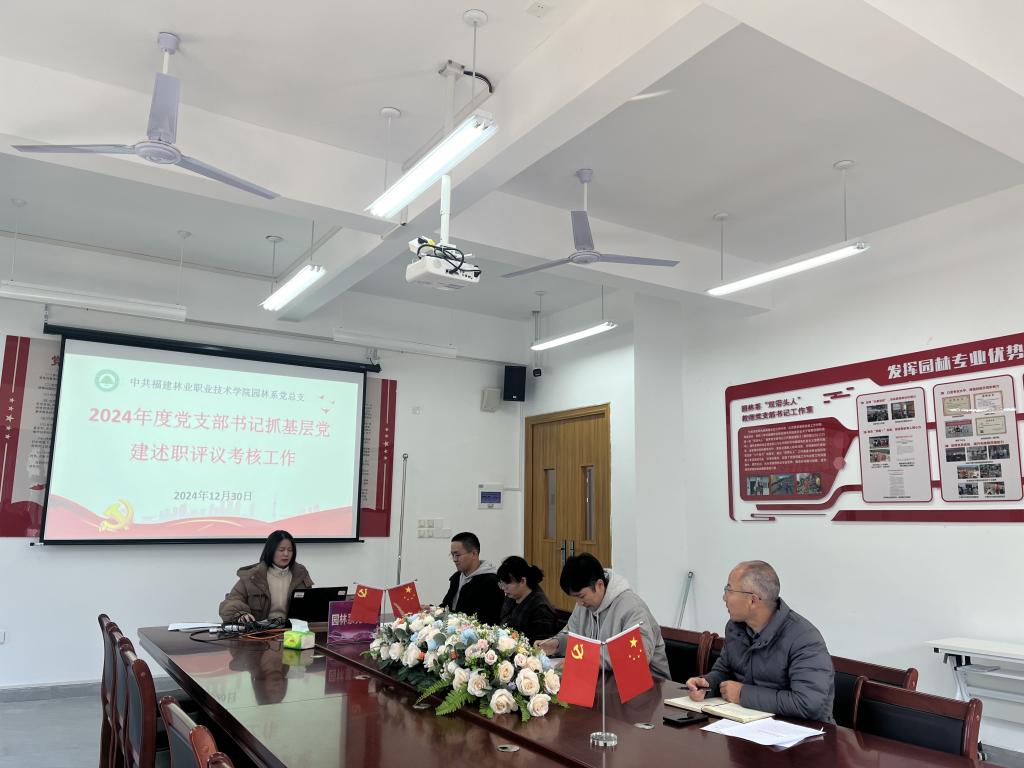 为贯彻落实新时代党的建设总要求和新时代党的组织路线,进一步推进学院基层党支部工作规范化、制度化、科学化建设,强化基层党支部政治功能和组织功能,充分发挥党支部战斗堡垒作用和广大党员先锋模范作用,根据中共福建林业职业技术学院委员会基层党支部工作考核评价办法(试行),园林系于2024年12月30日上午,组织开展2024年度各党支部书记述职评议会,听取3个基层党支部书记抓基层党建工作述职,并进行现场评议。园林系党总支成员、各党支部书记共同参加述职评议会议。会议由系主任黄华明主持。