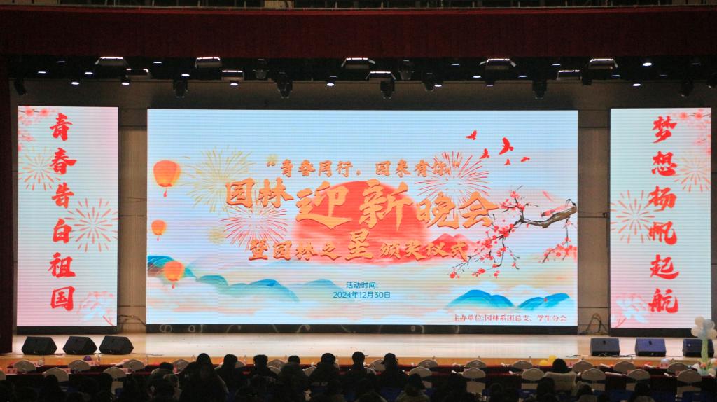岁末常欢喜,今朝多胜意。12月30日晚上7点,园林系2024年“青春同行,园来有你”迎新晚会暨园林之星颁奖仪式在江南体育馆正式举行。在这美好的时刻,我们心中满是对青春的无限感慨,畅想着未来,怀揣着梦想和希望,一同见证园林学子们的青春风采与荣耀时刻。