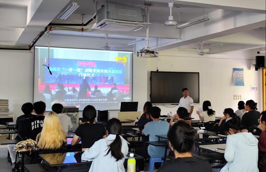 随后,海利尔集团的宣讲正式展开。企业人力资源负责人通过播放企业宣传片,以精彩的画面和生动的讲解,全方位展示了企业的发展历程、核心业务、市场地位及企业规模,让同学们对企业有了直观且全面的认识。在互动提问环节,同学们热情高涨,围绕企业文化、工作氛围、职业发展路径等关心的问题积极提问。企业代表结合日常团建活动、员工关怀举措等实例,详细解答同学们的疑问,使大家对企业的文化内涵有了更深入的理解。