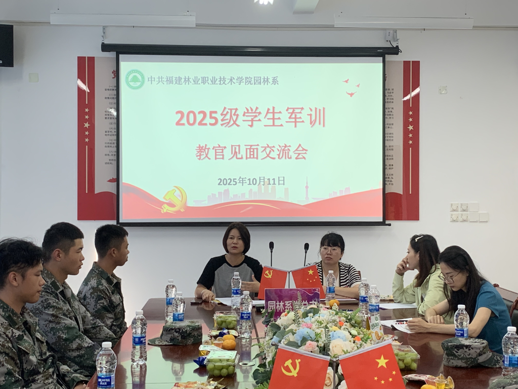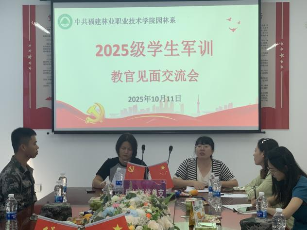 为确保2025级新生军训工作规范有序推进,提前统筹部署军训期间各项事宜,营造积极向上的军训氛围,10月11日,园林系组织召开2025级新生军训教官见面交流会。园林系党总支书记黄淑燕、学生科科长兼团总支书记吴锦鸿、2025级新生辅导员及本次军训教官共同参会,围绕军训工作细节展开深入研讨。