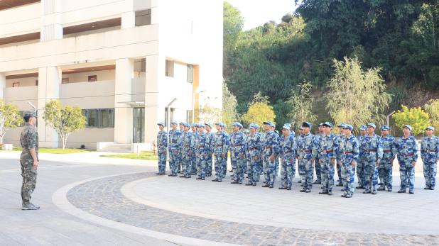 伴随着整齐的脚步声,各连队方阵依次迈着坚定的步伐入场。新生们身着统一迷彩服,军姿挺拔如松,神情昂扬饱满。在教官清晰有力的口令指引下,“稍息、立正”动作干脆利落,“跨立、整理着装”规范标准,“齐步走”步伐整齐划一、摆臂协调一致,嘹亮的口号声穿透现场,响彻云霄。从精准的转体动作到默契的队列变换,每一个细节都彰显着新生们连日来的训练成果,每一处风采都展现着园林学子吃苦耐劳的精神与严谨自律的作风,精彩表现赢得在场师生的阵阵掌声与一致好评。