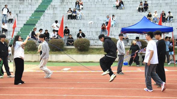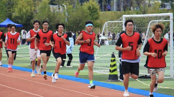 在运动会收官日,系部团体赛成为全场焦点,园林系学子踊跃参赛,“集体绑腿跑”项目中,队员们肩并肩、脚绑脚,喊着统一口号稳步向前,步伐默契尽显团队凝聚力;“仰卧传送带”赛场,学子们交替仰卧起身传递道具,动作连贯高效,汗水与笑容交织;“20*100米接力赛”环节,接力棒在队员间快速传递,每一次交接都牵动人心,最终以冲刺的欢呼点燃全场,三个项目既展现了园林系学子的青春活力,更在并肩协作中强化了集体向心力。