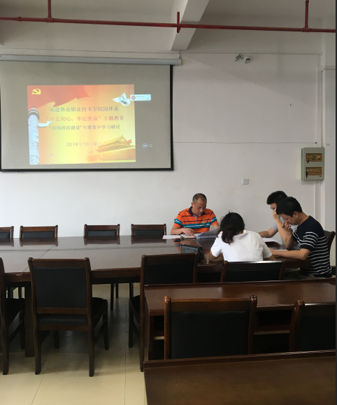 2019年10月9日上午,我系在会议室开展“不忘初心、牢记使命”主题教育“加强党的政治建设”集中学习研讨,园林系党总支4名委员参加了学习。此次学习由系党总支副书记陈剑勇主持。