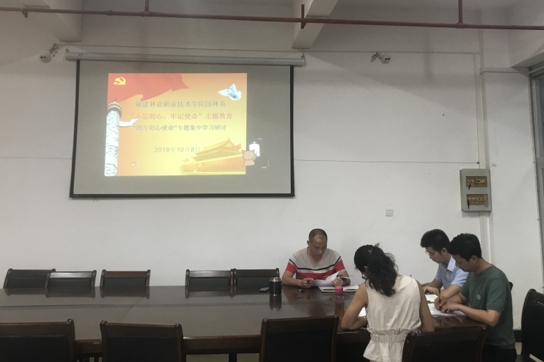 在前面集中学习周的基础上,2019年10月8日上午,我系在园林系会议室开展“不忘初心,牢记使命”主题教育集中学习研讨专题二:践行初心使命,园林系党总支4名委员参加了学习,此次学习由园林系党总支副书记陈剑勇导学。