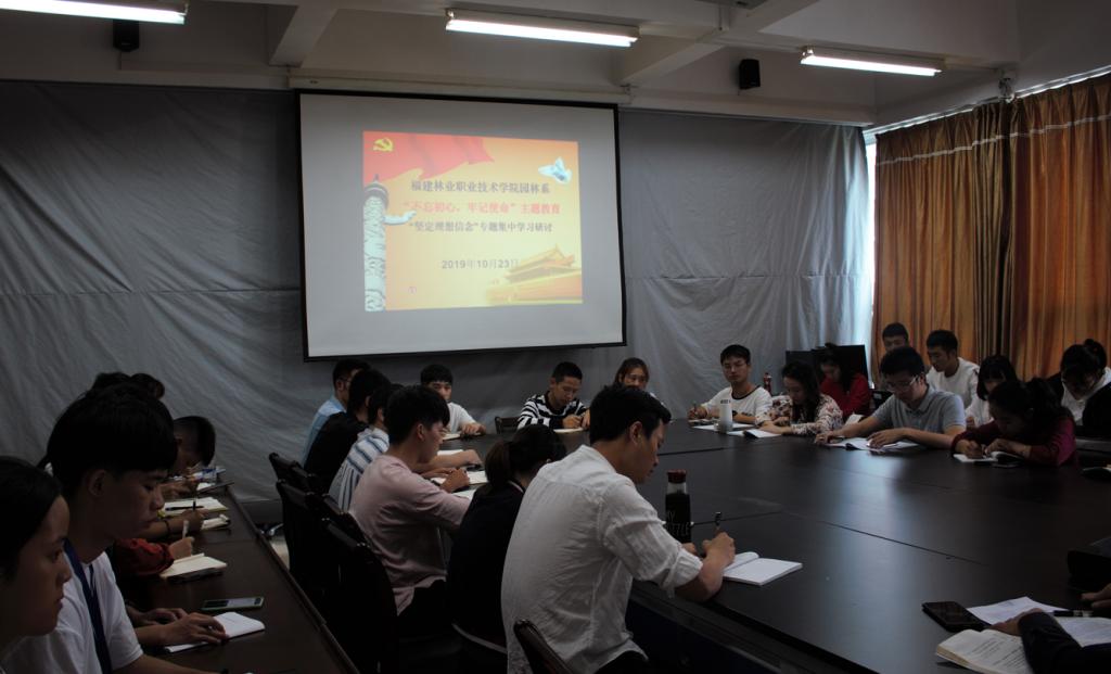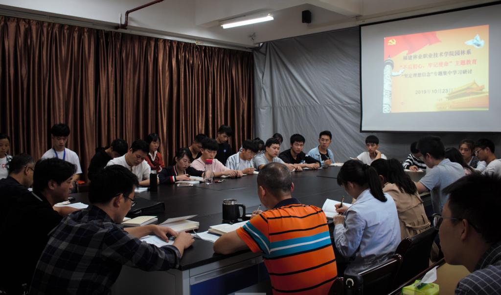 2019年10月23日下午,我系党总支在三楼会议室开展“不忘初心、牢记使命”主题教育“坚定理想信念”集中学习扩大会,园林系党总支成员、党委工作部叶新颖、全体教工党员和学生党员参加了学习,学院副院长严绍裕莅临指导。此次学习由系党总支副书记陈剑勇主持。