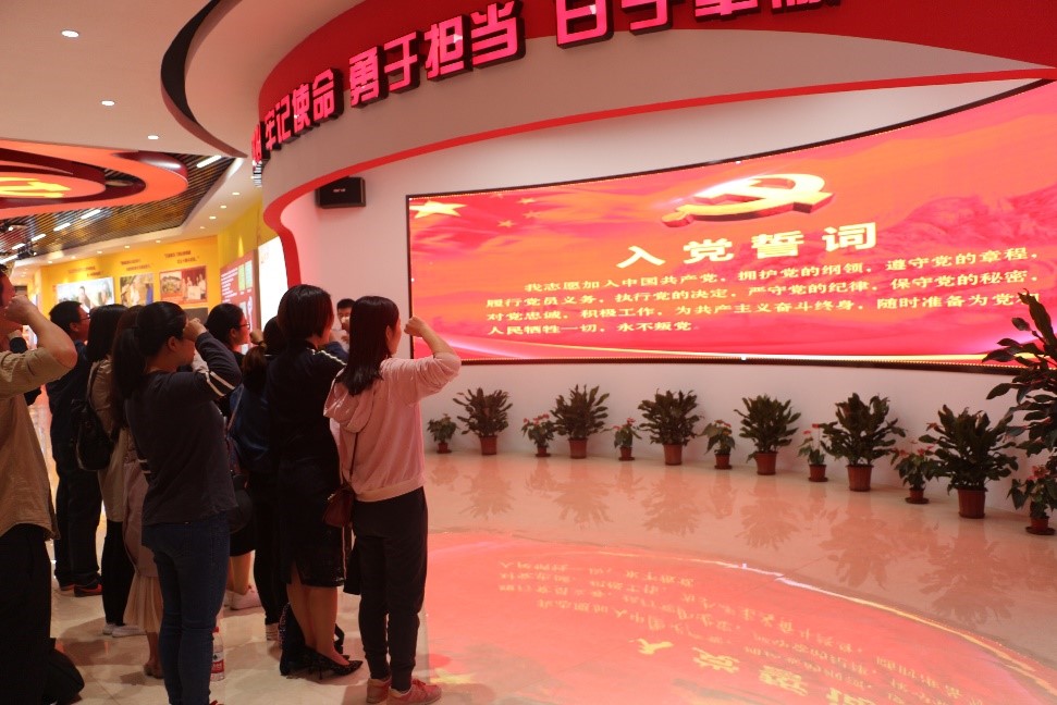 在廖俊波精神展览馆,园林系教工党支教工部全体教工党员认真聆听了解说员的讲解,观看了中宣部追授廖俊波同志“时代楷模”荣誉称号等短片,大家时而驻足沉思,时而轻声交流,感触良多。一幅幅生动的图片,一件件感人的事迹,以及展览馆中廖俊波同志生前在车上常备的四件套(衣服、雨鞋、雨伞、被子)等生活用品陈设,都生动地展示了廖俊波同志带领人民艰苦奋斗的情景,使教工党员们深切感受到了一名优秀共产党员的初心和使命。随后,园林系教工党支部全体教工党员重温了入党誓词。