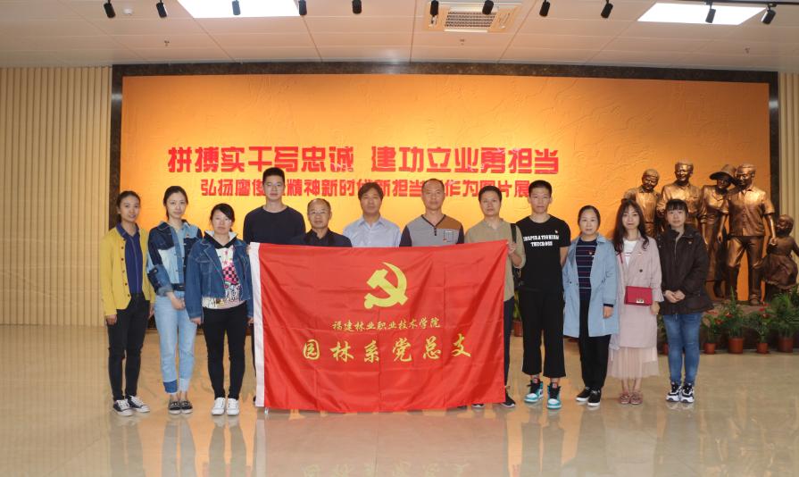 2019年11月3日上午,园林系学生党支部联合教工党支部赴武夷新区廖俊波纪念馆开展“弘扬廖俊波精神新时代新担当新作为”主题党日活动。副院长严绍裕、系主任黄华明、系党总支副书记陈剑勇、系教务管理科科长陈剑峰、系学生科长吴旻、学生党支部书记吴锦鸿、全体教工支部以及学生支部正式党员共同参加活动。