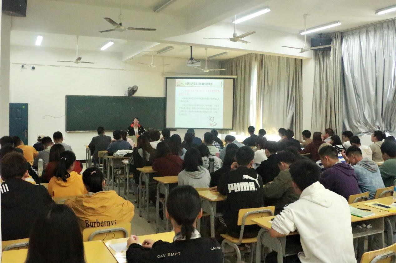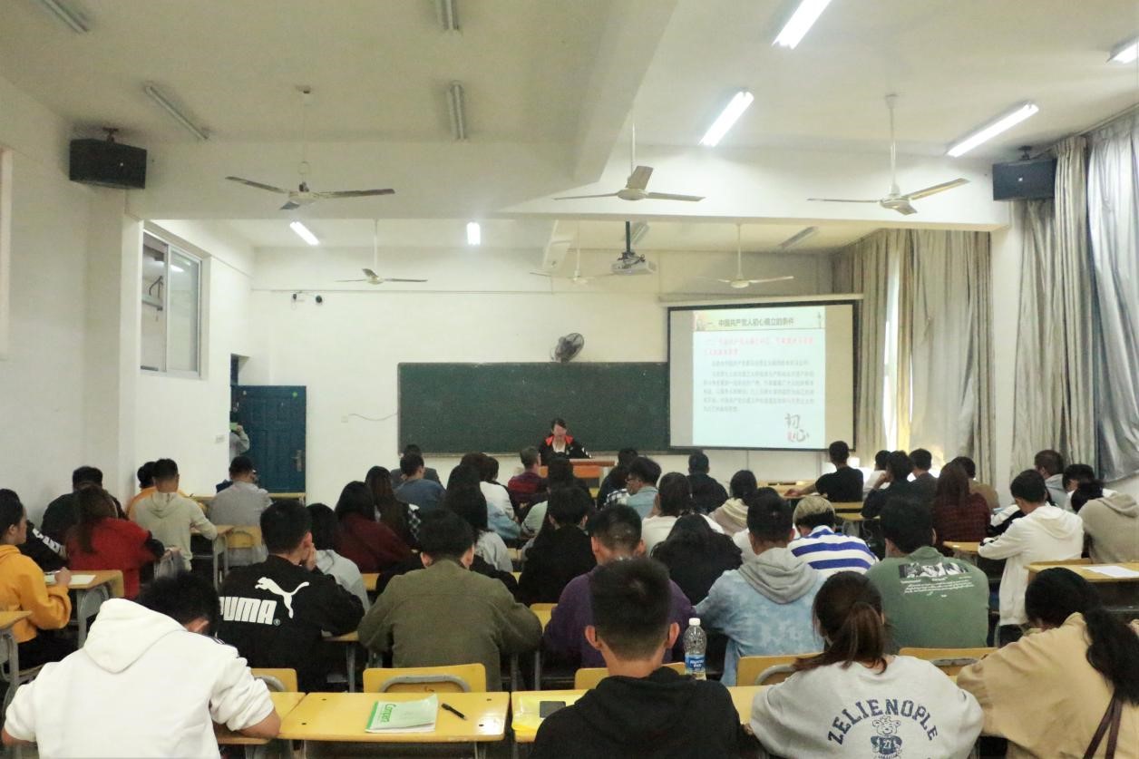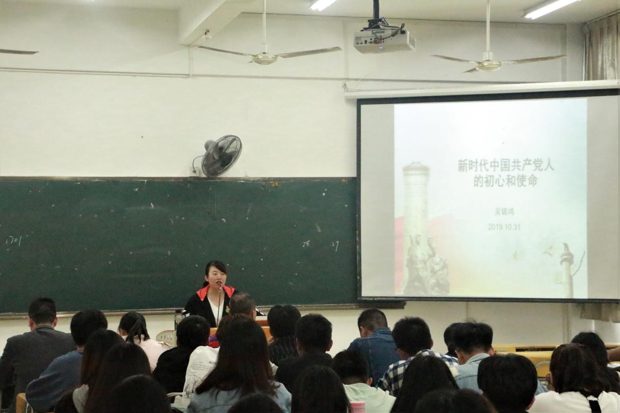 2019年10月31日12:20,园林系学生党支部于实训四305开展党员上党课活动,由学生党支部书记吴锦鸿老师作《新时代中国共产党人的初心和使命》讲座。学生党支部全体党员和积极分子参加讲座。