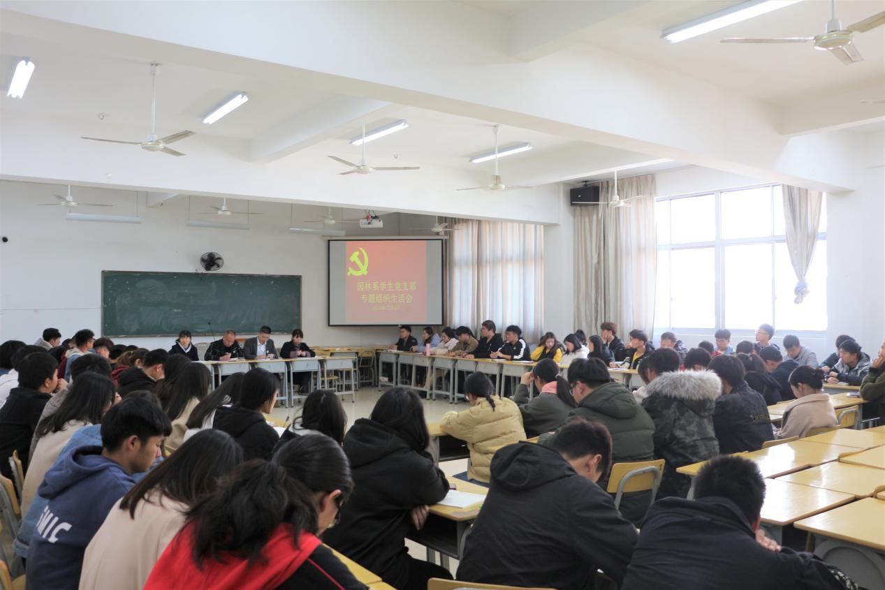2019年12月4日中午12:20,根据“不忘初心,牢记使命”主题教育工作安排,园林系学生党支部于实训四610教室召开专题组织生活会。本次会议由党支部书记吴锦鸿同志主持。支部全体党员和入党积极分子参加会议。
