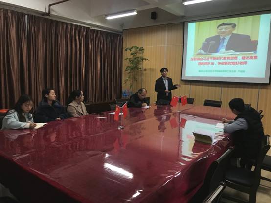 最后,严绍裕副院长强调了当好一个教师的重要性,并希望大家以“四有”好教师的标准要求自己,要做到政治素质过硬、业务水平精湛、育人水平高超。本次党课的学习,不仅坚定了教师党员的理想信念,更激发了教师党员做好“立德树人”的决心。