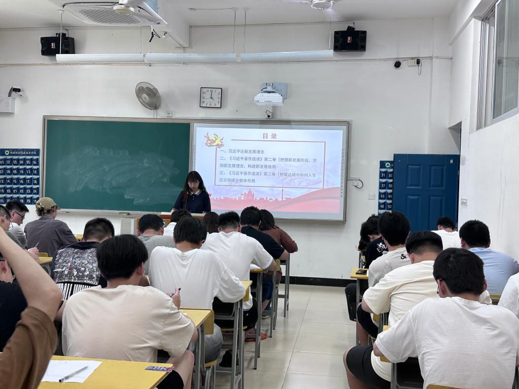 党课上,曹婧老师首先带领同学们学习了《习近平著作选读》第二卷“把握新发展阶段,贯彻新发展理念,构建新发展格局”的相关内容。习近平总书记在党的十九届五中全会上强调,全面建成小康社会、实现第一个百年奋斗目标之后,我们要乘势而上开启全面建设社会主义现代化国家新征程、向第二个百年奋斗目标进军,这标志着我国进入了一个新发展阶段。新发展理念是一个系统的理论体系,回答了关于发展的目的、动力、方式、路径等一系列理论和实践问题,根据新发展阶段的实际,习近平总书记提出了新发展理念,并指出要从根本宗旨、问题导向、忧患意识把握新发展理念。