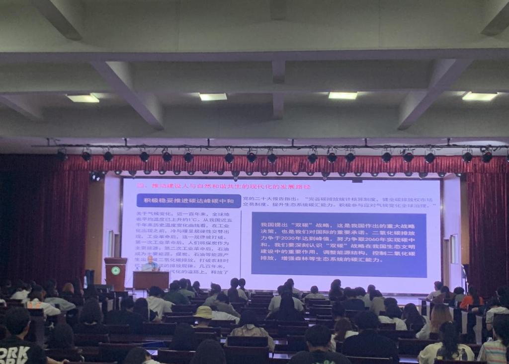 党的二十大报告提出,“中国式现代化是人与自然和谐共生的现代化”,明确了我国新时代生态文明建设的战略任务,总基调是推动绿色发展,促进人与自然和谐共生。为贯彻落实党的二十大精神,深入开展学习贯彻习近平新时代中国特色社会主义思想主题教育,5月30日晚七点,园林系党总支书记陈剑勇在江南校区礼堂开展主题教育专题党课,各支部全体党员、积极分子以及陈剑勇书记所挂钩班级风景园林设计2201班共同参与。