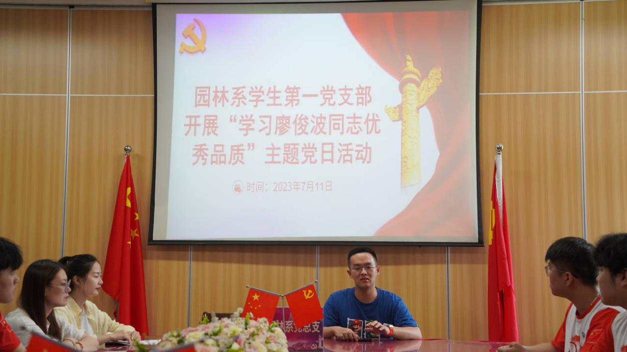 为深入学习贯彻习近平新时代中国特色社会主义思想,落实省委“深学争优、敢为争先、实干争效”行动部署以及深入开展主题教育,强化学习型党支部建设。2023年7月11日,园林系学生第一党支部开展“学习廖俊波同志优秀品质,践行为民服务初心使命”主题党日活动,本次活动由支部书记倪海奔主持,支部教师、学生党员通过线上与线下相结合的方式参与。