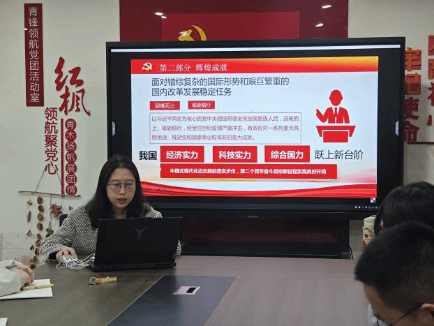 本次党课以“会议概况”“辉煌成就”“精神要义”“青年担当”四个模块为脉络,把握党的二十届四中全会精神内核与时代要求,回顾全会概况,深度解读十五五规划的战略部署与重要内涵历史与政治高度、重点阐释现代化产业体系构建、高水平科技自立自强等战略任务,引导学生把握国家发展大势与时代前进方向,在思想层面强化理论武装,筑牢信仰之基;行动层面练就过硬本领,积极投身社会实践,发挥先锋模范作用,以实绩彰显党员本色。