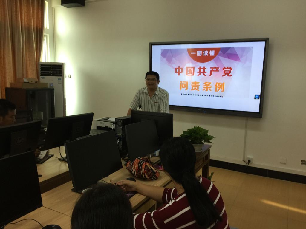 艺术设计系党总支书记谢福荣老师主持学习会并授课,对中央颁布实施的《中国共产党问责条例》(以下简称《问责条例》)和《福建省高等学校践行监督执纪“四种形态”实施细则(试行)》进行了逐条解读,同时,结合学院及系部工作实际,介绍了学习体会。