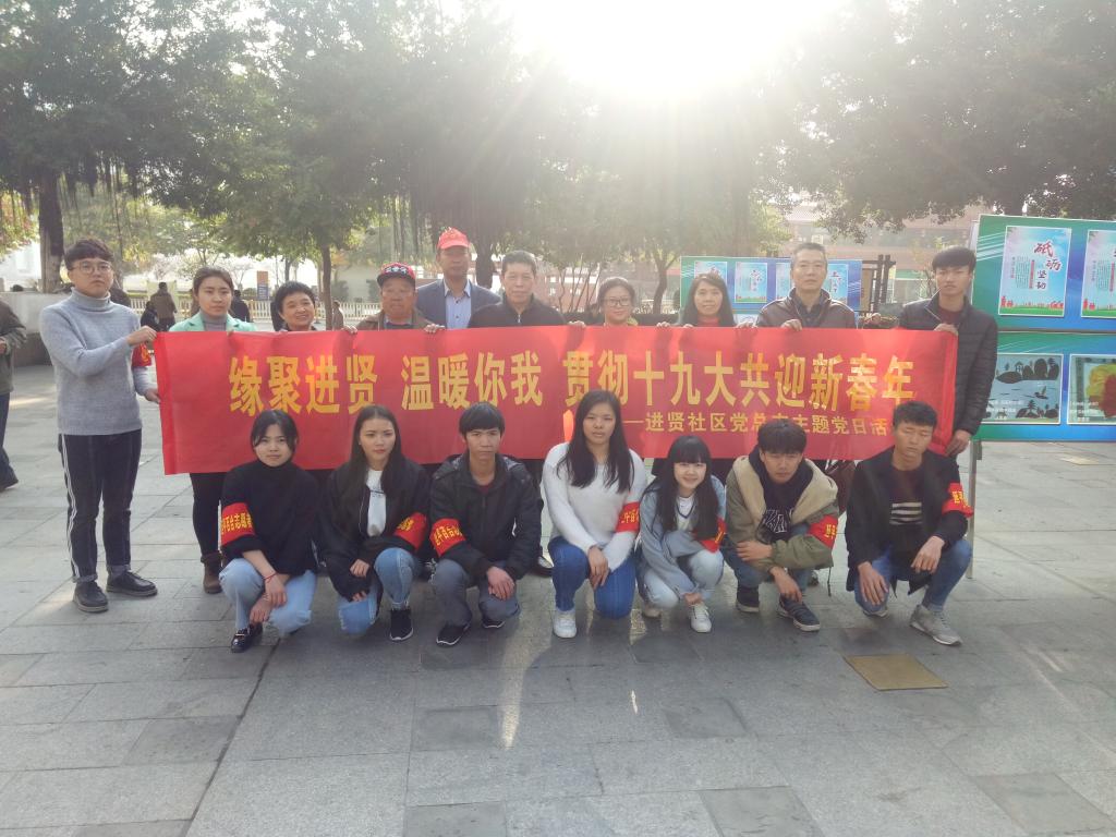 2018年1月19日上午,福建林业职业技术学院艺术设计系联合南平市延平区四鹤街道进贤社区、南平市第一医院、南平市老干局、南平市国土局、南平市税务局、南平市实验幼儿园等单位,合作开展名为“缘聚进贤 温暖你我 贯彻党的十九大 共迎新春年”的党日宣传活动。活动现场,艺术设计系组织开展了“党的十九大精神宣传进社区 中华优秀传统文化进社区 社会温暖关怀进社区”的“三进”工作。