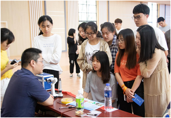 讲座结束后,胡永华院长发挥专业特长,讲解视力保护的相关知识并义务为同学们检查视力。