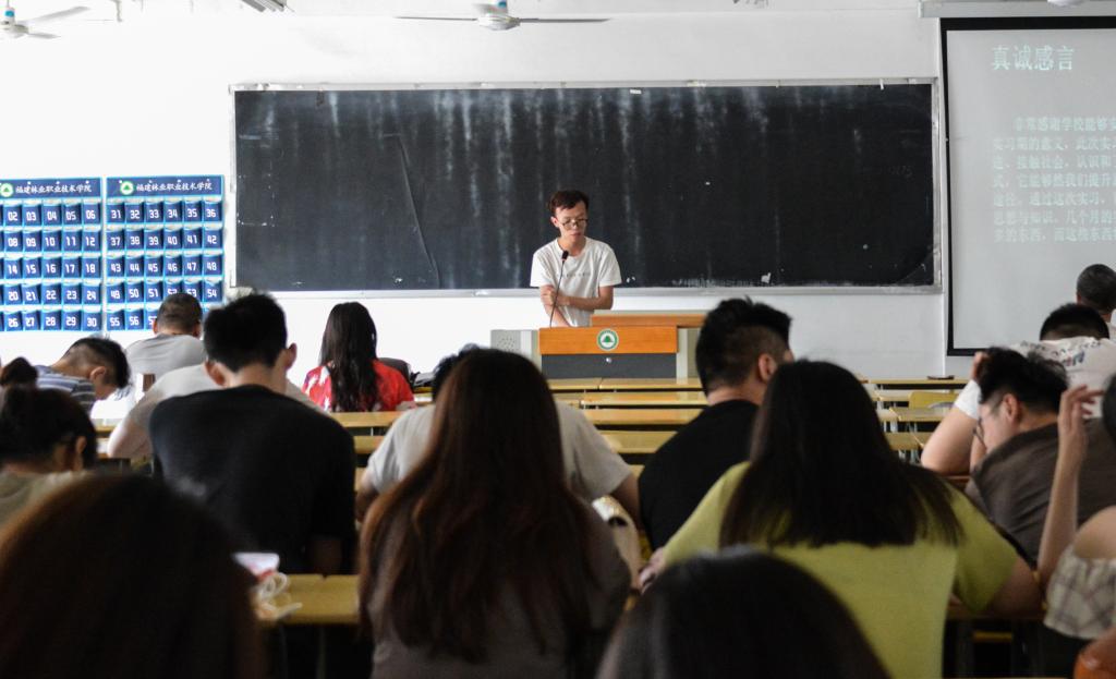 会上,陈清风、江成康、叶欧宇翔、李敏华等12位同学作为优秀典型,在现场做了实习分享。他们分享了作为平面设计师、广告策划师、摄影摄像等岗位的实习心得,将实习过程中的酸甜苦辣一一道来。
