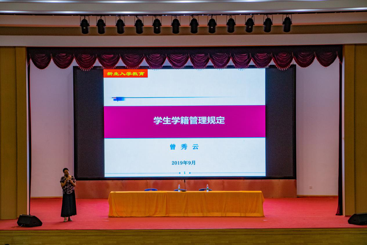 紧接着,曾秀云老师为新生介绍学生学籍管理事项,给大家细致讲解了学生学籍的各种规定,并向同学们介绍了学籍与学业管理的详细要求,带领同学们学习学生手册。